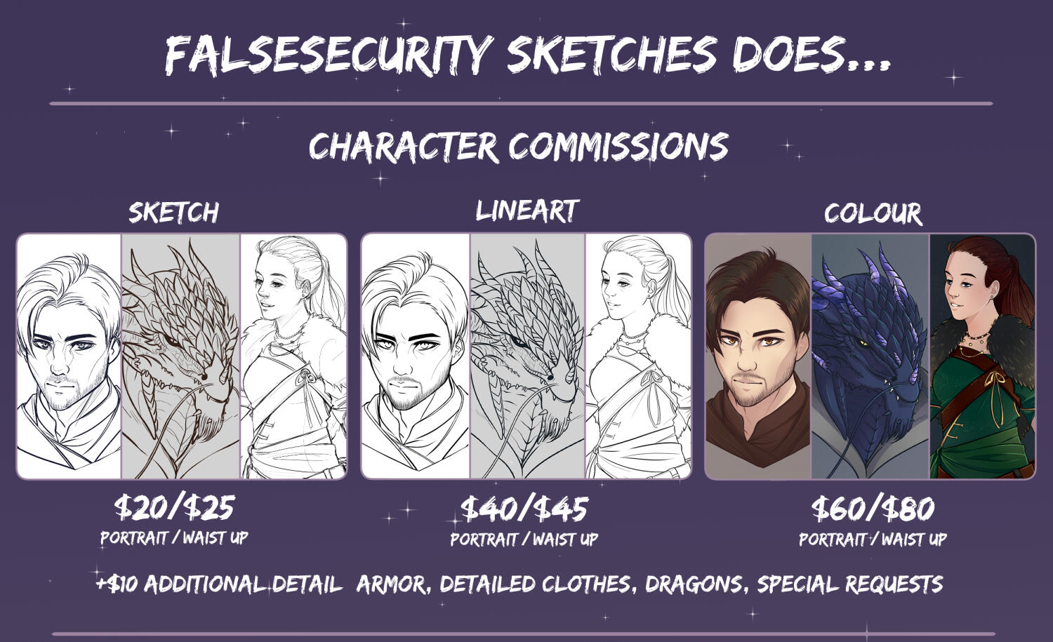 Commission Request Form:INTENDED USE; Private Personal / Promotion of a personal project / Commercial / Promotion of a commercial projectTYPE; Sketch / Lineart / Colour / Chibi / Papercraft / Pet Portrait / EmoteSIZE; Portrait / Waist up (for sketch, lineart and colour only, type N/A if this is not your type)CHARACTERS/PETS; Links to references along with a short description of their personality and any props they could be interacting with. For pets, I translate their face onto paper, so pick your best glamour shot!SPECIFICS; Asking if I will draw a character/pet a certain way, any specific details you'd like to be prominent in the finished artwork.YOUR IDEA; I'd like you to tell me how you see the finished commission looking so I can have a better idea of what you're looking for and can better cater to it, you can be as specific or vague as you like, feel free to reference other art, or art from my gallery (for sketch, lineart, colour and emote only, type N/A if this is not your type)REQUIRED FILE SIZE; size that you'd like the final rendered files to be, or file size required for intended use. If you intend to print the art and the maximum size you'd like it. (for sketch, lineart and colour only, type N/A if this is not your type. Emotes will default to 112x112, 56x56, 28x28)
