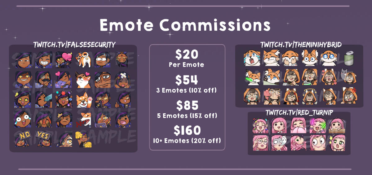 You can commission me for twitch emotes, papercraft dolls and more! Click below on the pricing/previews to get started!